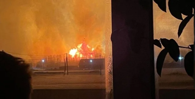 Як зазначають місцеві оперативні служби, існує загроза розповсюдження вогню на житлові будинки. Один із них уже палає, відомо про першого пораненого з опіками.