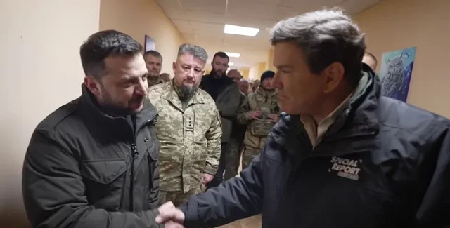 Журналіст Fox News Брет Байєр з'їздив в Україну і взяв інтерв'ю у президента Володимира Зеленського. Сюжет, присвячений другій річниці початку повномасштабного вторгнення, вийде в ефір у четвер, 22 лютого. Його знімали менш ніж за 2,5 км від розташування російських військ. Про це повідомляють на сайті Fox News.