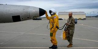 Підполковник Джошуа готується випробувати літак та свій скафандр для висотних польотів | Фото: US Air Force