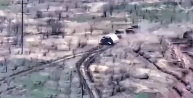Уже 9 квітня з'явилися перші кадри боїв. На них можна побачити, як колосальна кількість російської техніки прямує колоною в одному напрямку, однак після того, як їх почали атакувати скидами з дронів, вони почали роз'їжджатися на всі боки. Це не допомогло противнику уникнути втрат, адже удари були успішними.