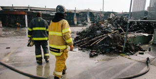 Рятувальники біля знищеного гіпермаркету "Епіцентр" у Харкові | Фото: ДСНС