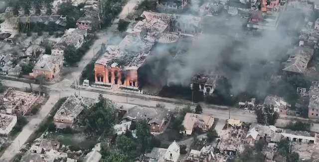 Вулиці Вовчанська у Харківській області вкриті десятками димних стовпів, які здіймаються над місцем влучань артилерії та керованих авіаційних бомб (КАБів) ЗС РФ. У приватних будинках знесло дахи, руйнуються стіни. Квартали багатоквартирної забудови поки що стоять, а церкви розбиті. Як виглядає Вовчанськ через 18 днів після початку наступу РФ, показали бійці підрозділу безпілотників (БпЛА) "ГРИФОН" 501-ого окремого батальйону морської піхоти ЗСУ в Telegram-каналі.