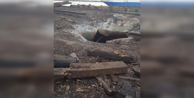 Також видно, як в одному місці на палубі "Авангарду" є наскрізний отвір у покритті.