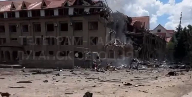 Він проінформував, що "прилетіло" в районі Гострої Могили, біля казарм колишнього Луганського вищого військового училища штурманів, "де вже з комфортом обжилися російські загарбники".