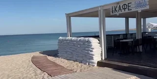 У мережі з'явилося відео, на якому показано один із прибережних барів, по периметру обкладений мішками з піском.