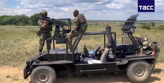 "Зенітний багі "ZВераБой", створений для боротьби з українськими дронами. Багі озброєний поворотною кулеметною дистанційно керованою установкою з двома спареними ПКТ, ще однією установкою з шістьма автоматами АК-12, а також саморобними картковими мортирами для стрілянини впритул", — йдеться в повідомленні.
