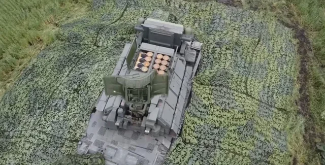 На відео видно, як російський ЗРК заїжджає до будівлі-укриття, після чого в неї влучно потрапляє український снаряд — будівля вибухає разом з тим, що усередині неї.