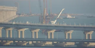 Уздовж Кримського мосту встановлюють потужні палі для захисту від дронів, — ЗМІ (фото)