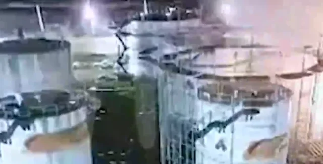 За даними російських ЗМІ, дрон упав на території нафтосховища в місті Світлоград. На опублікованому відео після вибуху видно, що почалася пожежа.