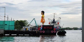 Компанія Netflix з нагоди виходу нового сезону серіалу "Гра в кальмара" влаштувала шоу одразу у двох азійських країнах. В Таїланді встановили гігантську ляльку Йон-Хі з "Гри в кальмара", яка пропливала по річці. Відео очевидці виклали в інстаграм.