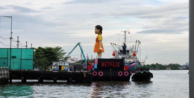 Так, в Бангкоку, столиці Таїланду, місцеві жителі і туристи могли побачити гігантську ляльку Йон-Хі з "Гри в кальмара", яка пропливала по річці Чао Прайя.
