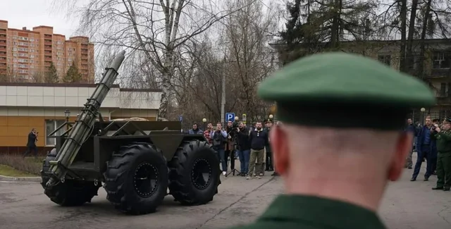 У РФ бойовий робот "Челнок" наїхав на військовослужбовців під час демонстрації (відео)
