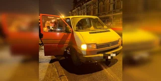 Правоохоронець опублікував фото з місця інциденту з ТЦК. На одному фото — мікроавтобус військкомату, який стоїть біля тротуару. На іншому — заднє сидіння "бусика", засипане склом з розбитого вікна.