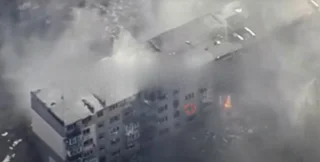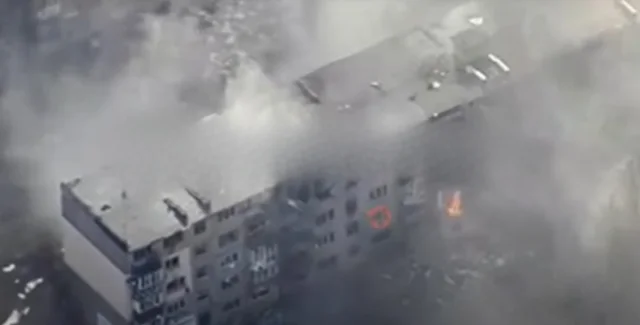 Допис про удар по окупованому населеному пункту з'явився у мережі 8 квітня. На відео бачимо напівзруйнований житловий квартал Селидового, за яким стежить дрон. У якийсь момент по одній п'ятиповерхівці прилітає бомба невідомого походження. Коли дим дещо розвіюється, бачимо, як "склались" перекриття однієї секції.