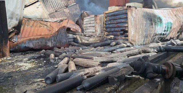 На оприлюднених відео видно, що пожежа почалася серед контейнерів, де могли перебувати компоненти для палива, робітники почали розбігатися, а далі почалися вибухи.