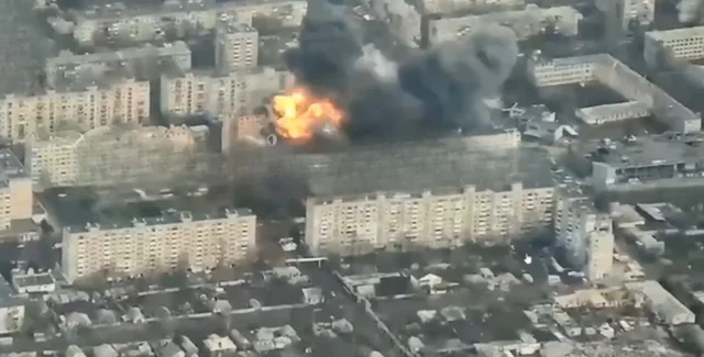 Допис з кадрами успішної роботи української авіації з'явився вдень 15 травня. На відео, знятому дроном, бачимо панораму міста: квартал напівзруйнованих багатоквартирних та приватних будинків. За секунду посеред забудови стається вибух та у небо здіймається стовп диму та вогню, вищий за дев'ятиповерхівки. Автор написав, що на відео — робота екіпажу Су-27. Як з'ясувалось, українці скинули на схованку ЗС РФ "товсту бомбу".