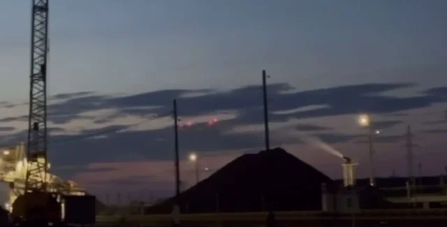 Також у мережі поширили відео, на яких видно спалахи у небі та чутно вибухи.
