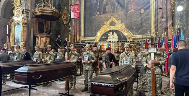25 липня у Львові в Гарнізонному храмі апостолів Петра і Павла попрощалися з дванадцятьма воїнами, які воювали у 24-ій окремій механізованій бригаді, виконували бойові завдання і потрапили в полон, з якого не повернулися, повідомляє "Медійна ініціатива з прав людини" (МІПЛ).