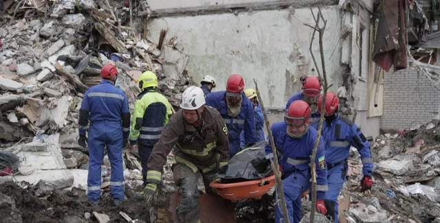На місці трагедії тривають пошуки людей під завалами. Наразі вже відомо про 15 загиблих унаслідок удару ракети по багатоповерхівці, де обвалився цілий під'їзд. Серед загиблих — шестирічний спортсмен Матвій Марченко.