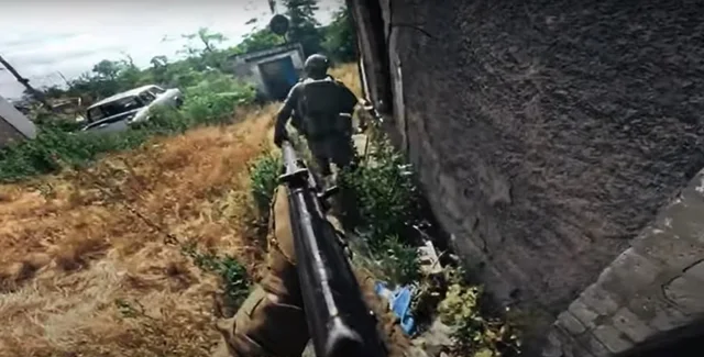 На кадрах, зафільмованих камерою на шоломі одного з бійців, видно, як два українські захисники робили зачистку вулиць в приватному секторі Покровська. Вони зрозуміли, що група окупантів ховається у погребі на подвір'ї будинку.