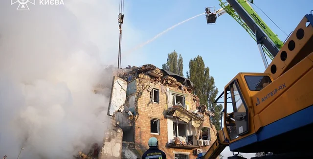 Президент України повідомив, що зараз у Києві триває розбір завалів житлового будинку після російського удару.