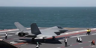 Винищувач-невидимка J-35 злетів з китайського авіаносця "Фуцзянь" за допомогою електромагнітної катапульти. Цю катапульту, також відому, як EMALS, раніше було встановлено тільки на авіаносці ВМС США USS Gerald R Ford.