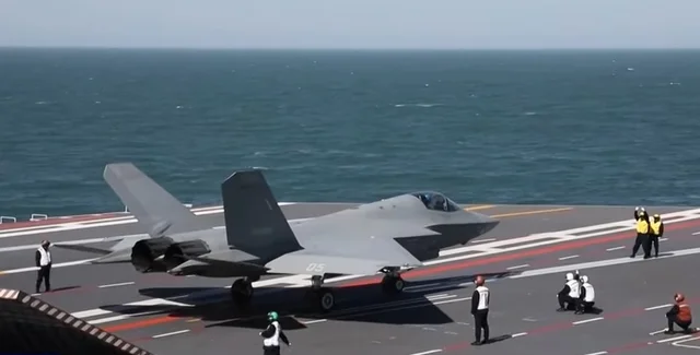 На кадрах, опублікованих китайською державною телекомпанією CCTV, винищувач-невидимка J-35 злітає з китайського авіаносця за допомогою електромагнітної катапульти в невідомому місці. Також були опубліковані кадри зльоту китайського винищувача J-15T і літака дальнього радіолокаційного виявлення та управління KJ-600.