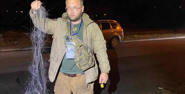 Журналіст показує оптоволкно з дрона, що атакував Краматорськ | Фото: Радіо Свобода