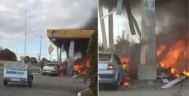 БПЛА влучив в автозаправну станцію в Бєлгородській області, спричинивши займання та поранення серед мирних жителів | Фото: колаж Фокус