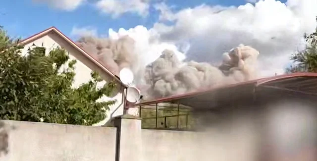 Камера зафіксувала величезний стовп диму після прильоту снаряда. Відповідне відео опублікували низка Telegtam-каналів, зокрема "ДС: новини Дніпро".