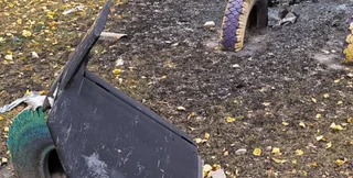 На відео, опублікованих у соцмережах, видно уламок ударного дрона типу "Шахед". БпЛА частково зруйнував літній павільйон на території дитячого садка.