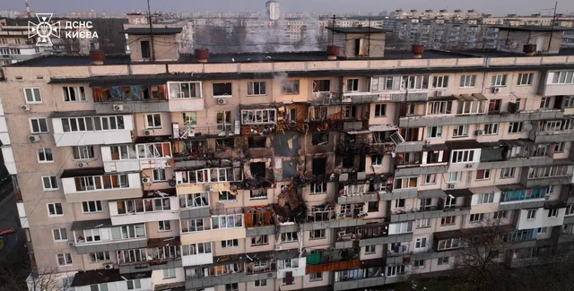 В Державній службі України з надзвичайних ситуацій розповіли, що від атаки російського безпілотника на дев'ятиповерхівку в Деснянському районі Києва постраждали п'ятеро людей. Врятовано 17 осіб, серед яких одна дитина. Під завалами ще можуть лишатися люди, триває пошуково-рятувальна операція.