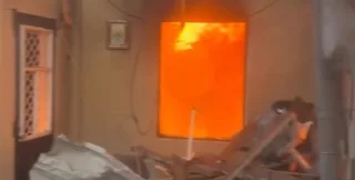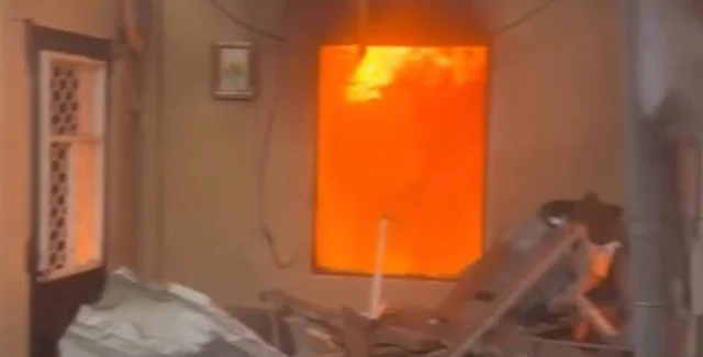 Вона опублікувала кадри, де видно, що дах будинку завалився, а всередині житла вирує пожежа, яку намагаються загасити рятувальники.