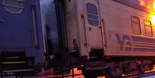 Влучання сталося перед теплотягом та у пасажирський вагон, в якому через це виникла пожежа.