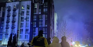 Як повідомили в ДСНС Києва, у ніч проти 28 січня столиця знову опинилася під атакою ворожих БпЛА. Зокрема, внаслідок удару у Голосіївському районі уламки дрона влучили в торець 17-поверхового житлового будинку. Хоч перед цим мер міста писав про пожежу, за даними рятувальників загоряння не сталося. Однак вони зафіксували пошкодження покрівлі та стін технічного поверху, вибиті вікна у квартирах верхніх поверхів, а також понівечені припарковані поруч автомобілі.