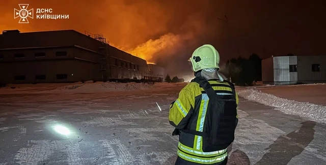 У ніч на 7 лютого Київська область знову опинилася під ударом російських безпілотників. У місті Яготин Бориспільського району виникла масштабна пожежа на території складського комплексу — рятувальники працювали на місці від самого ранку і пожежу досі не загасили.