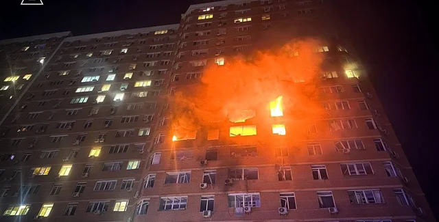 У ніч на 9 лютого російські окупанти атакували ударним безпілотником багатоповерхівку в Одесі, внаслідок чого здійнялась пожежа та загорілись припарковані поряд авто.