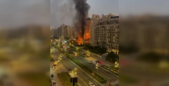 Кадри прильоту іранської цілі оприлюднила низка моніторингових каналів та ЗМІ. За даними видання Astra, ворожа балістична ракета влучила поруч із п'ятизірковим готелем Fairmont The Palm, внаслідок чого сталась пожежа.