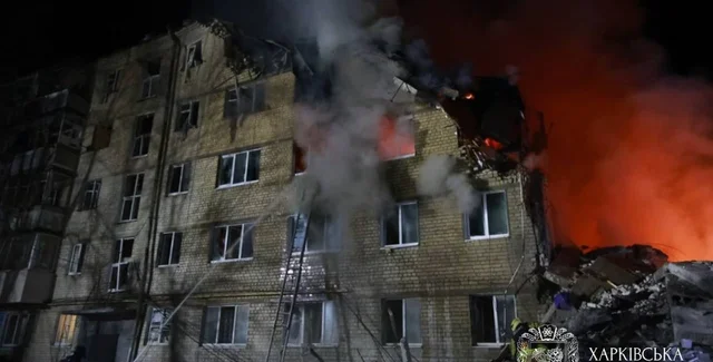 У ніч на 7 березня ЗС РФ прямим влучаням зруйнували п'ятиповерховий будинок у Київському районі Харкова, внаслідок чого був повністю знищений під'їзд будівлі та спалахнула масштабна пожежа.
