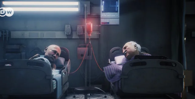 Анімовані російський президент Володимир Путін і його білоруський колега Олександр Лукашенко опинилися в одній палаті в клініці по оперативному лікуванню світових лідерів у сатиричному шоу "Заповідник" від DW.