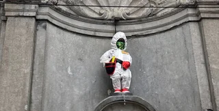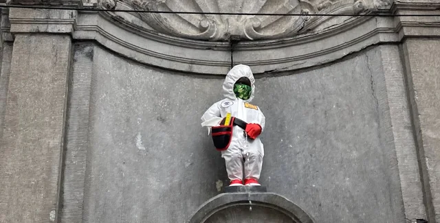У столиці Бельгії Брюсселі статую хлопчика, який пісяє, одягнули в захисний медичний костюм і захисну маску. Про це повідомляє VRT.
