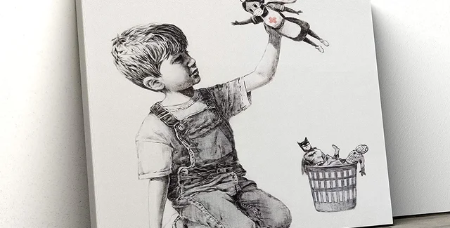 На зображенні зображено хлопчика, який стоїть на колінах і грається лялькою-супергероєм-медсестрою в накидці, тоді як Бетмен і Людина-павук лежать у сміттєвому відрі. Аукціонний будинок Christie's заявив, що ціна, сплачена за роботу, була "світовим аукціонним рекордом" для Бенксі.