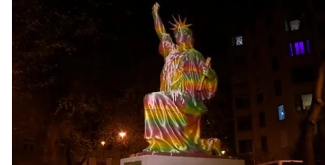 Статуя заввишки один метр була виготовлена на 3D-принтері. Вона зображала Статую Свободи в Нью-Йорку, розфарбовану в кольори веселки. Автор також поставив Леді Свободу на одне коліно, підняв їй праву руку зі стиснутим кулаком, а в ліву вклав табличку з написом: "Чорні життя мають значення".