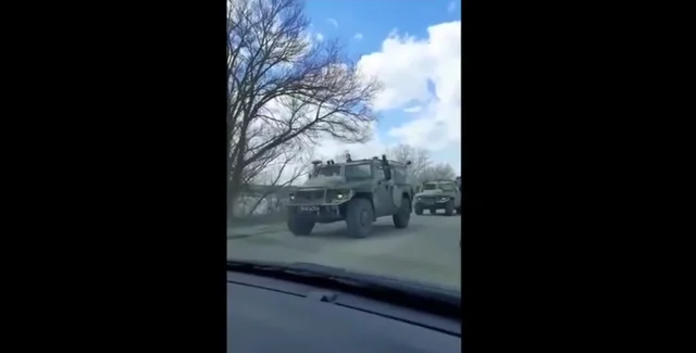 Відео було знято 6 квітня, в колоні видно бронеавтомобілі "Тигр", які росіяни експлуатують у військах з 2005 року, військові вантажівки КАМАЗ, а також польова медична машина.