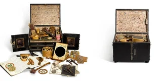 Скринька зберігалася у приватній колекції в Німеччині, і, як сказано в описі: "багато з предметів мають сліди інтенсивного використання". Також там зазначено, що лот рідкісний і цікавий, але магічні предмети з нього швидше потішні та декоративні, ніж мають магічні властивості.