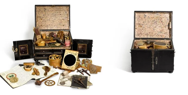 На онлайн-аукціон Sothebyʼs виставили рідкісний і незвичайний лот: справжню відьомську скриньку з усіма необхідними для магічних ритуалів предметами. Остання ставка становить 12 тисяч фунтів стерлінгів і ціна зростає. Про це повідомляють на сайті аукціонного будинку.