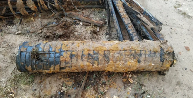 Витягнута труба часів царської Росії діаметром 200 міліметрів прослужила понад 120 років, чому і дивуються співробітники комунальних служб. Міцність дерев'яної конструкції надавало спеціальне просочення, а поверх труб була обмотка.