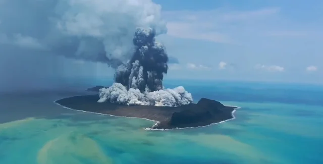 Виверження вулкана було настільки потужним, що його було чути на відстані 800 км. Його також вдалося зняти з супутника. Після цього цунамі підтопило острови країни.