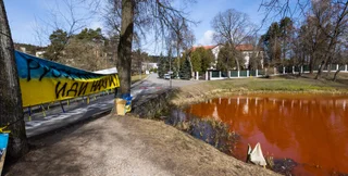 Озеро біля посольства Росії в Литві пофарбували в колір крові (фото, відео)