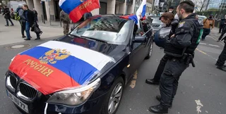 Поліція Німеччини зупинила автоколону з російськими прапорами | Фото: DW